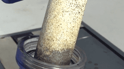 エレメント、ドレンボルトに専用アタッチメントを取付け溶剤を圧送!溶剤には、界面活性剤成分が入っているので汚れを浮かして根こそぎ除去。洗浄効果が最大限発揮できる40℃まで暖めます。