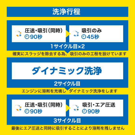 ダイナミック方式スタチックダイナミック方式を採用し洗浄力が大幅にアップ!パーフェクトな洗浄を実現。